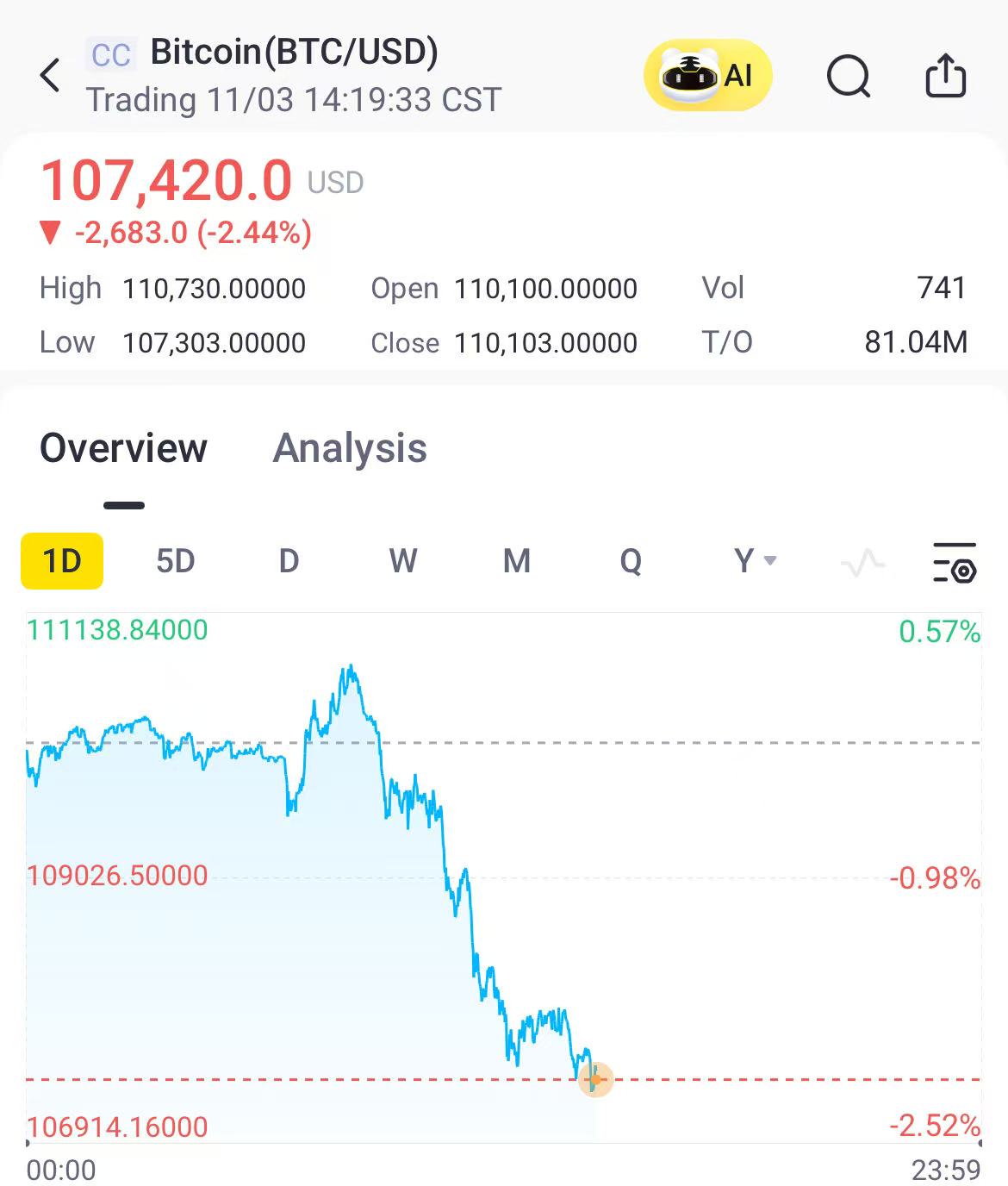 Bitcoin fell under $108,000 on Monday, snapping the “Uptober” narrative and extending the risk reset that gathered pace late last week.