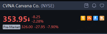 Carvana Co. fell 8% in premarket trading on Thursday after used car retailer reported higher third-quarter profit and revenue on Wednesday, aided by strong demand for preowned vehicles.