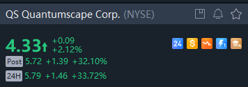 Quantumscape Corp. stock soared 34% in overnight trading after the solid-state battery developer announced it has successfully integrated its advanced Cobra separator process into baseline cell production.