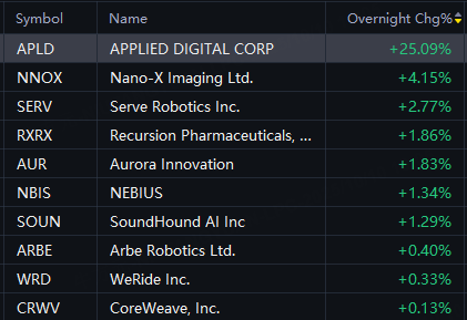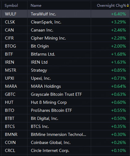 24H|Crypto Stocks Jump, TeraWulf up 6%, Bitfarms and IREN up 2%; Drone-Related Stocks Rally, Palladyne AI and SES AI up 4%; APLD up 25%; Energy Fuels up 3%