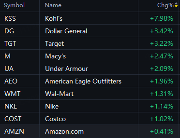 Retail Stocks Rally; Kohl's up 8%; Target, Dollar General up 3%; Macy's up 2%