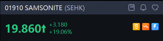 Samsonite shares surged over 19% in Hong Kong as Q3 net profit increased by 11%, with a gross margin rising to 59.6%.
