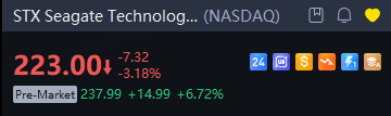 Other data storage companies also gained in premarket trading. SanDisk rose 6% and Western Digital rose 6%; Micron Technology rose 3%.