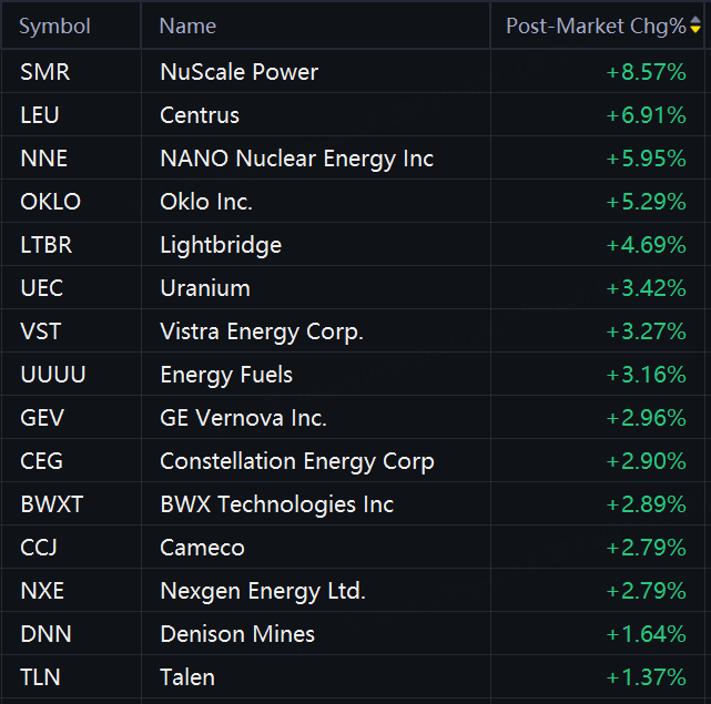 Crypto and Nuclear energy stocks jumped in extended trading after Nvidia earnings.