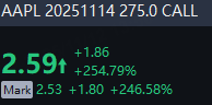 A total number of 865.96K options related to Apple were traded on Tuesday, of which call options accounted for 68%. Particularly high volume was seen for the $275 strike call option expiring Nov. 14, with 98,372 contracts trading. $AAPL 20251114 275.0 CALL$