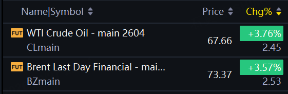 Oil prices jumped. WTI Crude Oil futures rose 3.76%; Brent Oil futures rose 3.57%.
