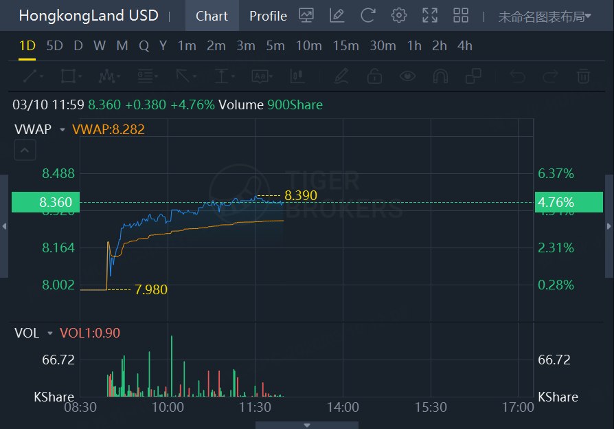 HongkongLand USD jumps 4.76% at 11:59 am, Mar 10.