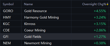 24H|Gold Stocks Jump, Gold Resources up 5%, Harmony Gold and Kinross up 3%; Novo-Nordisk down 3% and Eli Lilly down 4%