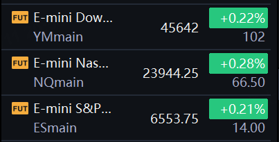 At 7:50 a.m. ET, Dow e-minis were up 102 points, or 0.22%, S&P 500 e-minis were up 14 points, or 0.21%, and Nasdaq 100 e-minis were up 66.5 points, or 0.28%.