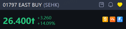 East Buy shares jumped 14% in afternoon trading. The company's shares pulled back over 51% within 21 trading days after reaching a new high on August 19.
