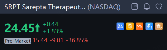 Sarepta said on Monday that its late-stage study testing two gene-targeted therapies for Duchenne muscular dystrophy did not meet the main goal, sending its shares plummeting 36.9% in premarket trading on Tuesday.
