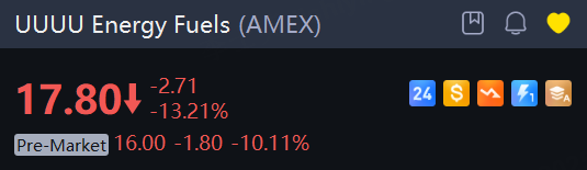 Energy Fuels reported quarterly losses of seven cents per share, which missed the Street estimate for losses of six cents. The shares sank 10.1% in premarket trading.