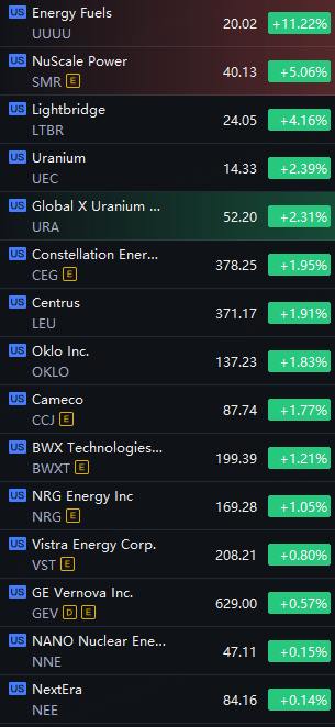 Nuclear Stocks Surge. Energy Fuels Up 11%; NuScale Power up 5%; Lightbridge up 4%; Uranium up 2%.