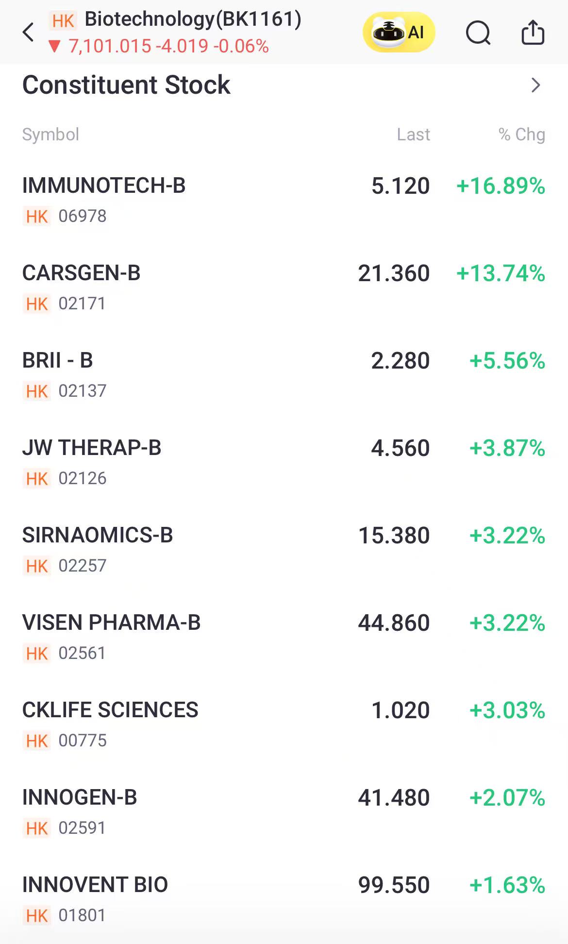 Biotech stocks jumped in Hong Kong. Immunotech up 17%; Carsgen up 14%; BRII up 6%; JW Therap up 4%; Sirnaomics up 3%.