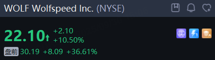 截至发稿,Wolfspeed周二盘前暴涨超36%。