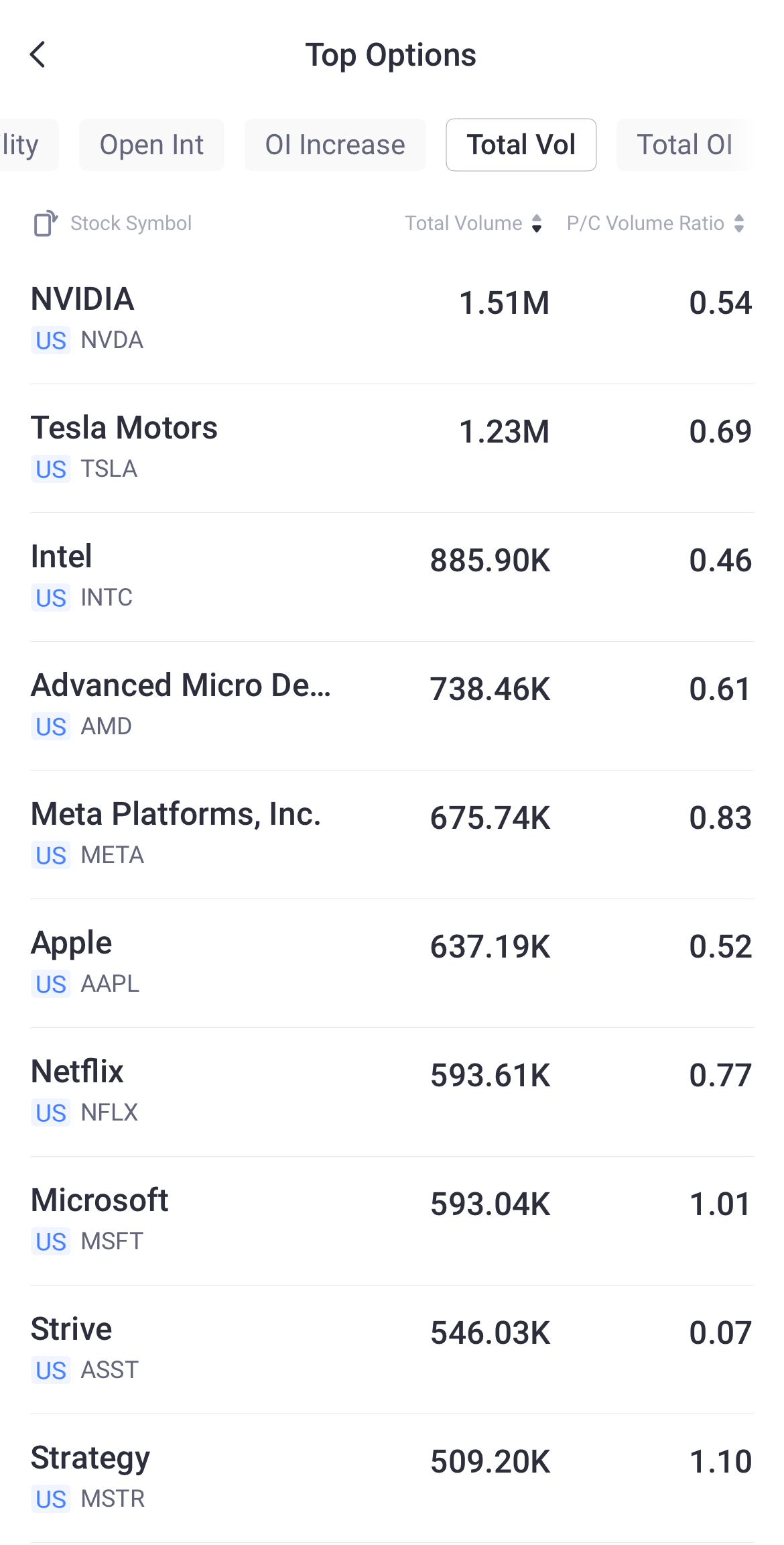 Top 10: NVDA, TSLA, INTC, AMD, META, AAPL, NFLX, MSFT, ASST, MSTR