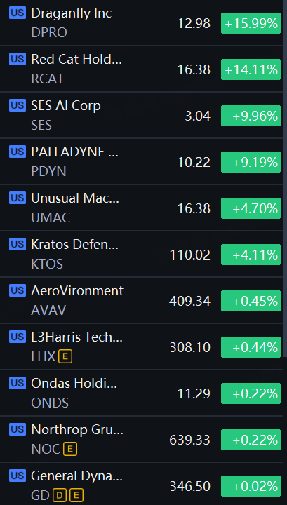 Drone Stocks Shined. Draganfly Up 16%; Red Cat Up 14%; SES AI And Palladyne Rose 9%; Unusual Machines and Kratos Rose 4%.