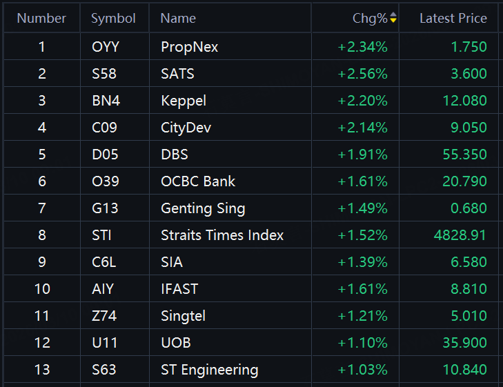 SG Morning Call | STI Rises 1.52%; ProNex, SATS, Keppel, CityDev, DBS up Around 2%; OCBC Bank, Genting Sing, SIA up over 1%