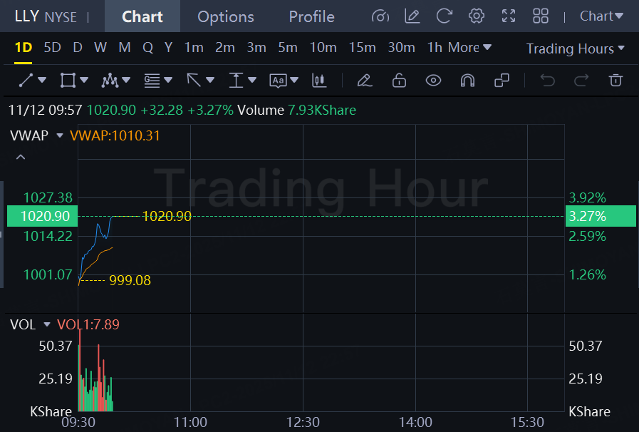 Eli Lilly stock jumped over 3% to $1020 per share, hitting another record high. Citi hiked its price target on Eli Lilly to $1,500 from $1,250, implying a potential upside of more than 50% from current levels, pointing to accelerating expectations for the company’s oral GLP-1 drug orforglipron. The bank reiterated a Buy rating on the stock.