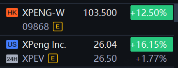 XPeng’s Hong Kong-listed stock rose as much as 12.5% to HK$103.5 on Tueday, while U.S.-listed shares closed more than 16% higher on Monday.