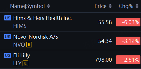 Weight-loss drugmakers' stocks fell on Friday. HIMS down 6%; Novo Nordisk, Eli Lilly fell about 3% after U.S. President Donald Trump said on Thursday that the price of the Danish drugmaker's best-selling weight-loss drug would be lowered.