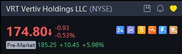 Shares of Vertiv Holdings rose 6% in premarket trading Wednesday after the data-center infrastructure company posted strong third-quarter earnings and hiked its full-year guidance.
