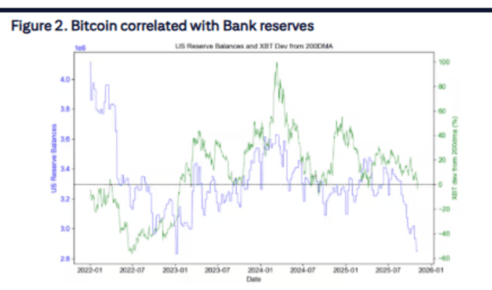 “Traditionally, falling reserves have also impacted equities negatively, but this did not happen prior to this week. But it is plausible that bitcoin is a more sensitive instrument for pure liquidity, especially with equities caught up in the fundamentally-driven AI narrative,” Citi says.