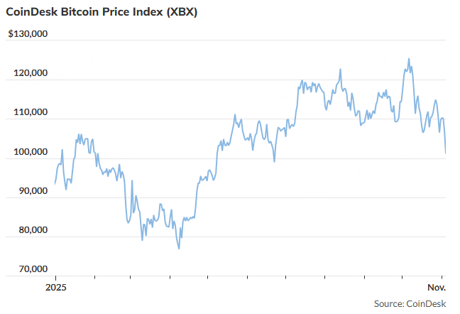 As of 4 p.m. Eastern time, bitcoin was trading at $100,689.51, a drop of 5.6% on the day. That marked the worst session for the crypto since April 3, Dow Jones Market Data showed, and capped off bitcoin's worst three-day stretch since Oct. 11, when it fell 9.9%. The weakness spread to exchange-traded funds that hold bitcoin, with the iShares Bitcoin Trust ETF IBIT falling 5.5%, its biggest drop since April 7.