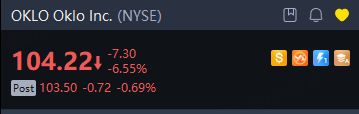 Shares were down 1% in late trading, after closing down 6.6%, to $104.22, in regular trading. Oklo's stock is up 391% through Tuesday's close and up 361% over the past 12 months.