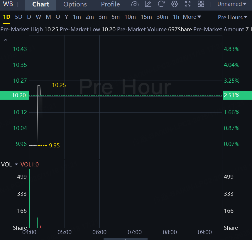 Weibo shares gained 2% in premarket.