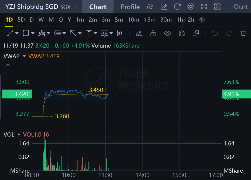 YZJ Shipbldg Jumps 5%. CGS International Says Its Valuation Seems Undemanding, Raising PT to S$4.51 from S$3.90
