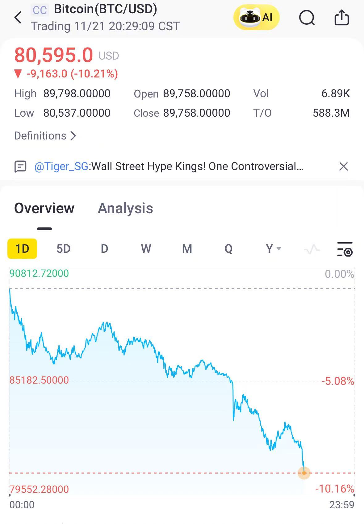 The world's largest crypto slumped 10% to $80,595 on Friday. It's trading 36% off the record high of $126,272 it hit in early October. Bitcoin is on pace for its worst week since November 2022, when the collapse of crypto exchange FTX sparked a brutal selloff.