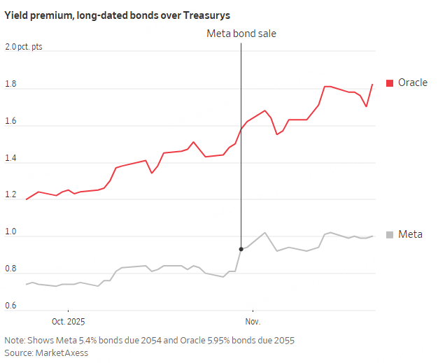 Meta, another tech behemoth, has a slightly less massive cash hoard and is seen as likely needing more debt to realize Chief Executive Mark Zuckerberg's large ambitions. When the social-media company issued $30 billion of bonds at the end of October, it had to lure investors with yields comfortably above those of its existing debt.