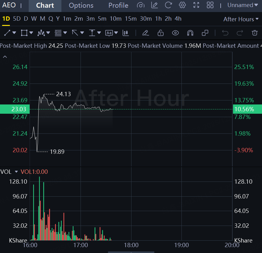 American Eagle now sees annual comparable sales rising in the low single digits, compared to its previous expectations of about flat growth.