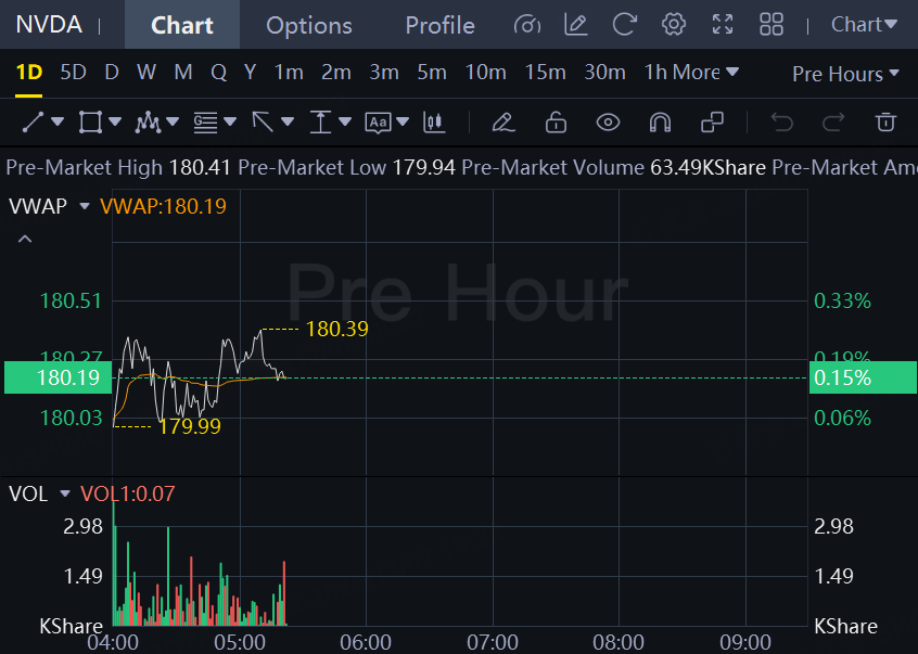 Nvidia shares were up 0.15% at $180.19 in premarket trading. It would be the stock's first back-to-back daily gains since Nov.10, according to FactSet data.