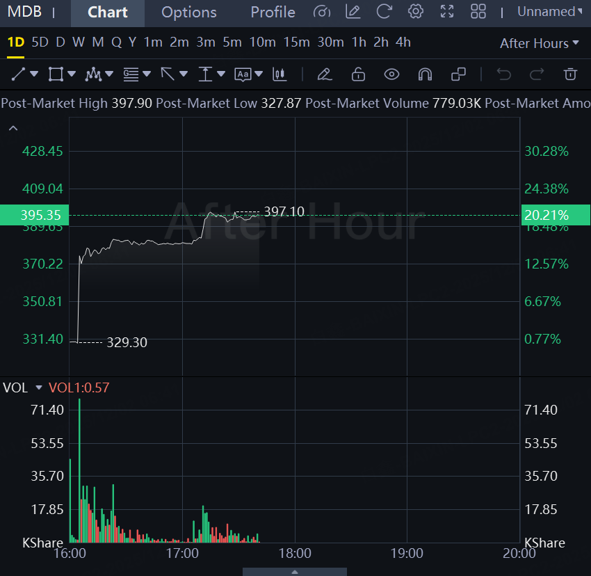 The document database company said Monday it expects revenue to be $2.43 billion to $2.44 billion for the full fiscal year, which is an increase from a previous range of $2.34 billion to $2.36 billion. It now anticipates annual adjusted earnings per share will be $4.76 to $4.80, compared with previous guidance of $3.64 to $3.73.