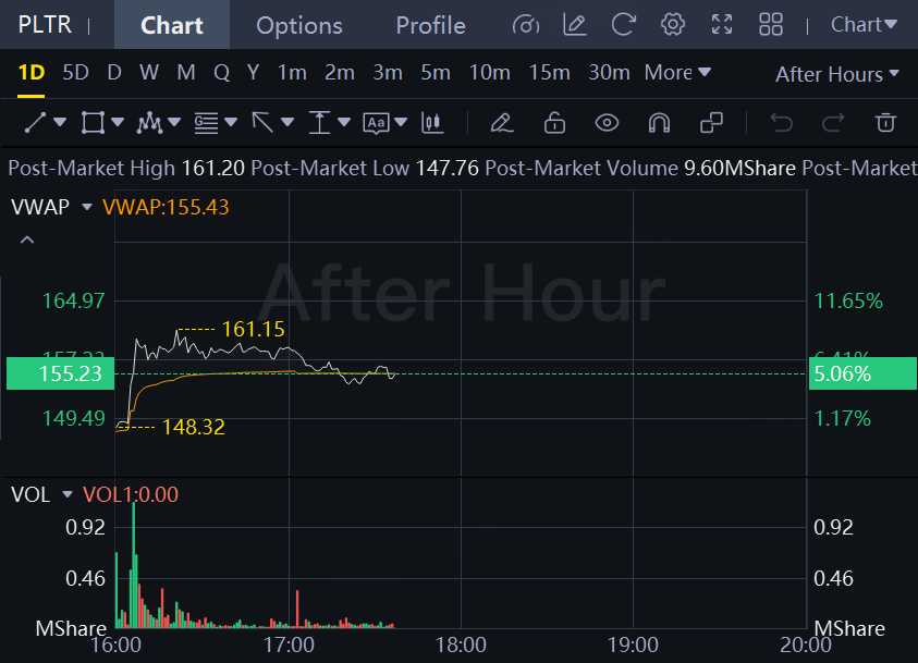 Shares rose 2.4% to $150.10 Monday. The tech-heavy Nasdaq Composite was rising slightly. Heading into Monday, Palantir shares have tumbled more than 17% this year against a 0.1% gain for the index.