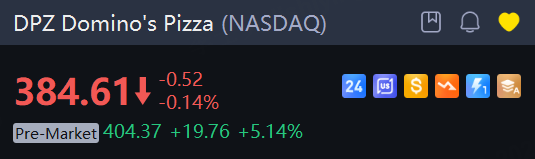 The world's largest pizza chain posted quarterly diluted earnings per share of $5.35, compared with $4.89 reported a year ago, but came in below estimates of $5.37 per share.