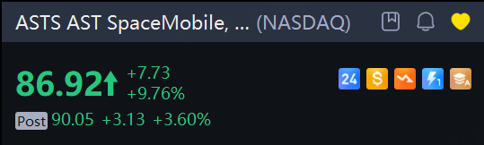 AST SpaceMobile shares gained 3.6% in extended trading.