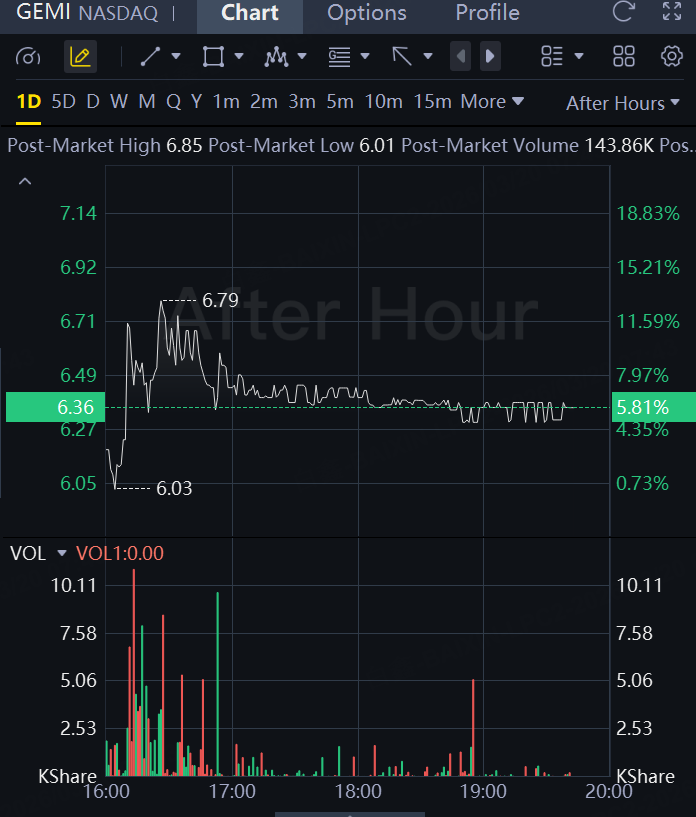 Gemini Space Station shares jumped 6% in after hours trading.
